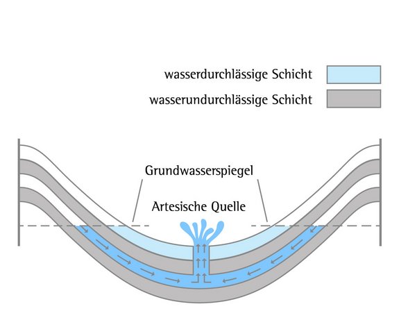Wo liegt der Unterschied zwischen einer artesischen Quelle und einem artesischen Brunnen?