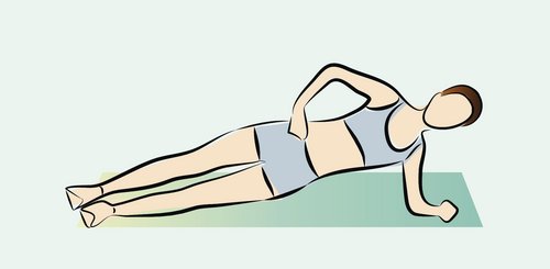 Legen Sie sich auf die rechte Seite. Stützen Sie sich mit Ihrem rechten Unterarm ab. Das Ellenbogengelenk befindet sich unter der Schulter. Legen Sie die Beine übereinander. Nur das rechte Bein berührt den Boden. Heben Sie nun das Becken, sodass Ihr gesamter Körper eine Gerade bildet. Nur der Unterarm und die Außenkante des rechten Fußes berühren den Boden.